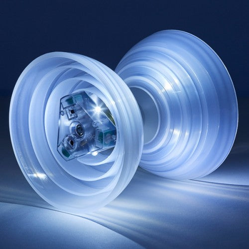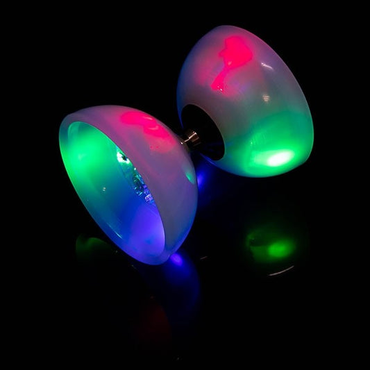 The diabolo (commonly misspelled diablo) is a juggling or circus prop consisting of an axle (British English: bobbin) and two cups (hourglass/egg timer shaped) or discs derived from the Chinese yo-yo. This object is spun using a string attached to two hand sticks ("batons" or "wands"). A large variety of tricks are possible with the diabolo, including tosses, and various types of interaction with the sticks, string, and various parts of the user's body. Multiple diabolos can be spun on a single string.
