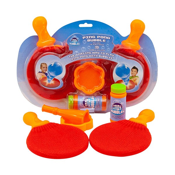 Ever wondered if you can play table tennis with bubbles? With this special kit from Indy now you can! This case of 36 sets will let your customers play the craziest games of ping-pong imaginable. Each set comprises a set of fabric-covered paddles, a bubble tray, a blowing the trumpet, and a bottle of Indy Bubble Solution.