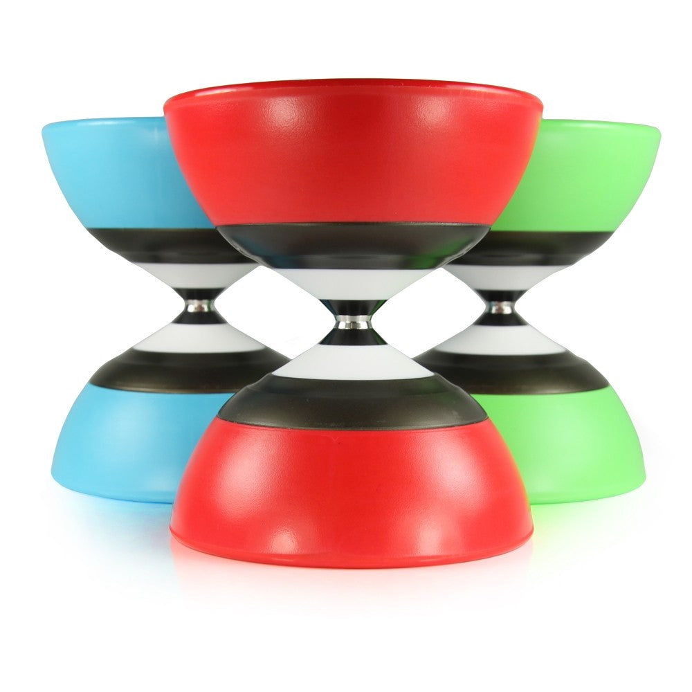 The new plastic 'Stability rings' dramatically increases the centrifugal force of the spinning diabolo. This gives the Evolution the stability and spin of much heavier diabolos, even though it weighs in at only 250g.